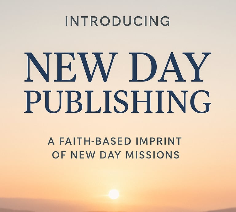 At New Day Publishing, we believe every testimony has the power to transform lives. As a ministry branch of New Day Missions, our purpose is to help Christian authors bring their God-given messages to life through books that inspire, heal, and lead others closer to Christ. From concept to completion, we walk beside authors through every stage of the publishing process—offering guidance, design, editing, and distribution that glorifies God in every detail. Whether your story reveals redemption, restoration, or revival, New Day Publishing exists to help you share it with the world.